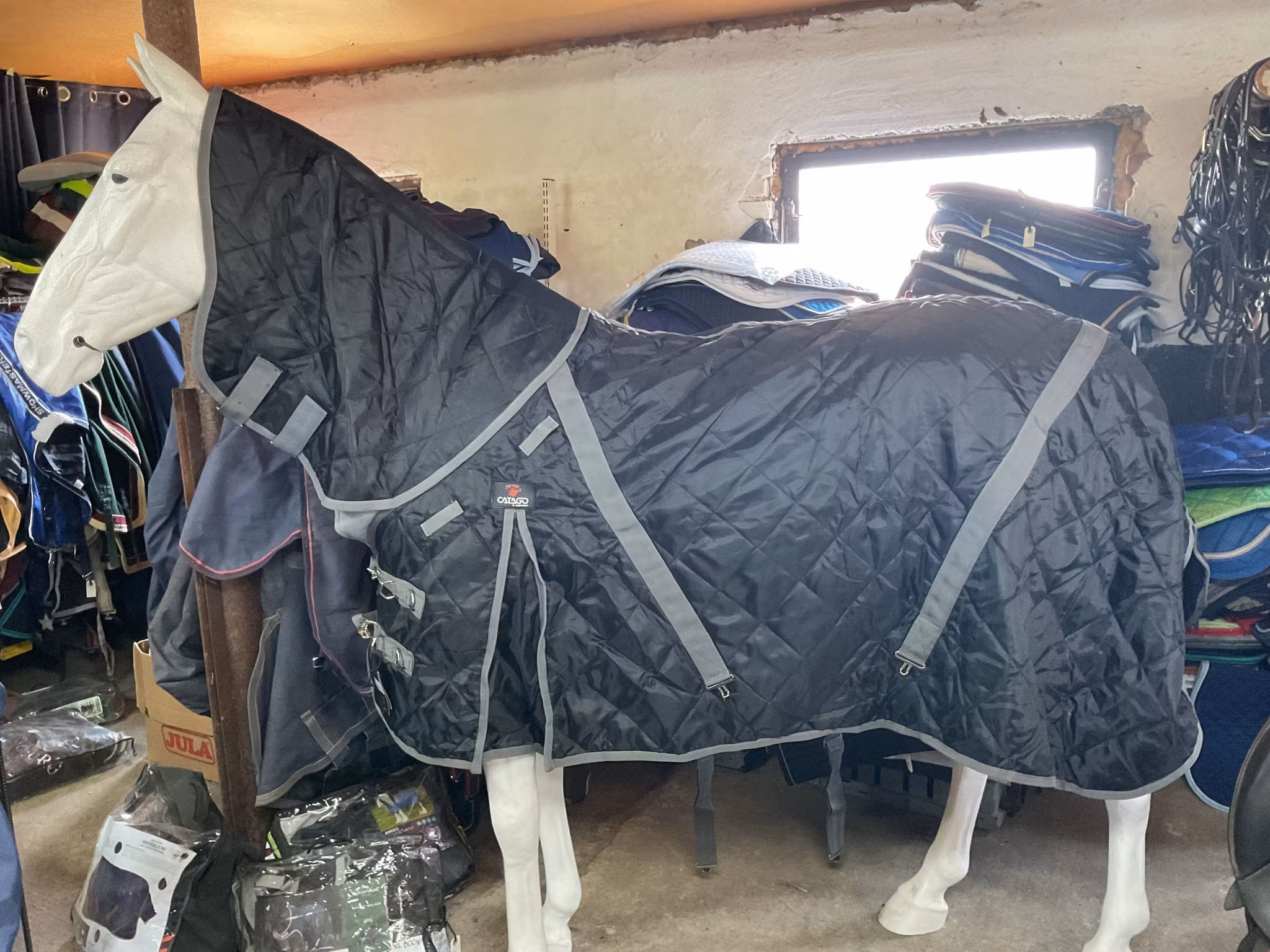 Catago,stalltäcke med hals man kan rulla ihop,100 gr, 135 cm, svart/grått, nytt 700 kr I lager. Lägg i korgen Lagersaldo: 1 Artikelnummer: 4592 Dela